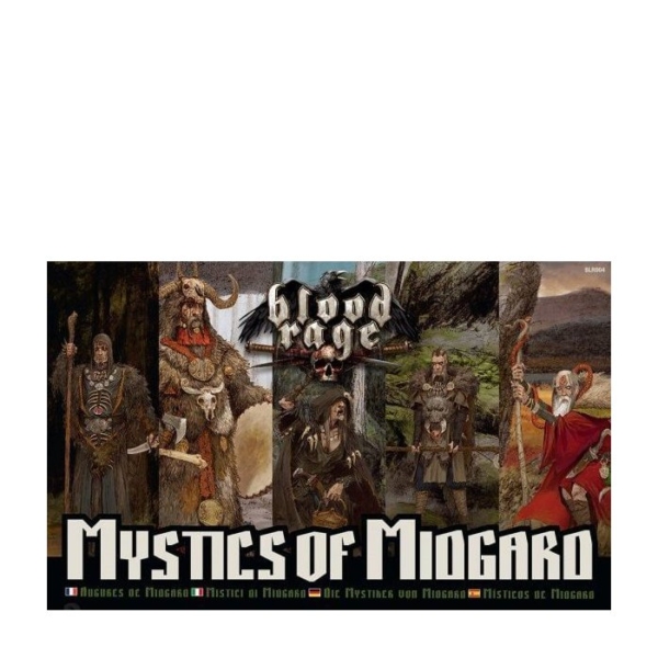 Mistici di Midgard è un’espansione per Blood Rage che vi consentirà di aggiungere nuova varietà al set base. I mistici sono delle truppe speciali che non sono considerati nè mostri nè guerrieri e che possono essere reclutati nel clan solamente dopo aver sviluppato una carta progresso dei Mistici. Ognuna di queste carte conferisce al clan 1 miniatura mistico, fino ad un massimo di 2, ed un’abilità speciale per tutti i mistici del clan, che si aggiunge al bonus di queste speciali unità di invadere una regione senza alcun costo.